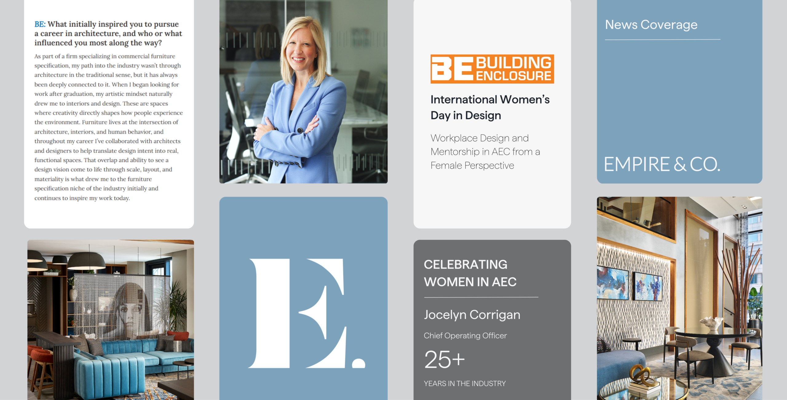 We’re proud to share that our Chief Operating Officer, Jocelyn Corrigan, has been featured in Building Enclosure magazine in an article titled “Workplace Design and Mentorship in AEC from a Female Perspective.”