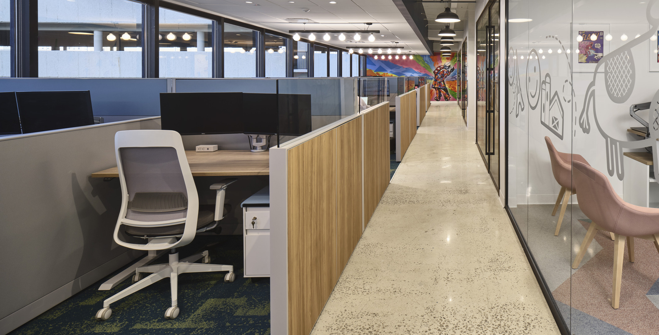 Completed in 2021, Bakerly encompasses over 16,000 square feet of space, including Steelcase workstations & private offices, conference rooms, and ancillary from various manufacturers such as Coalesse, AMQ, Sandler Seating, BluDot, and Rouillard. Added amenities include a full cafe and gaming area.