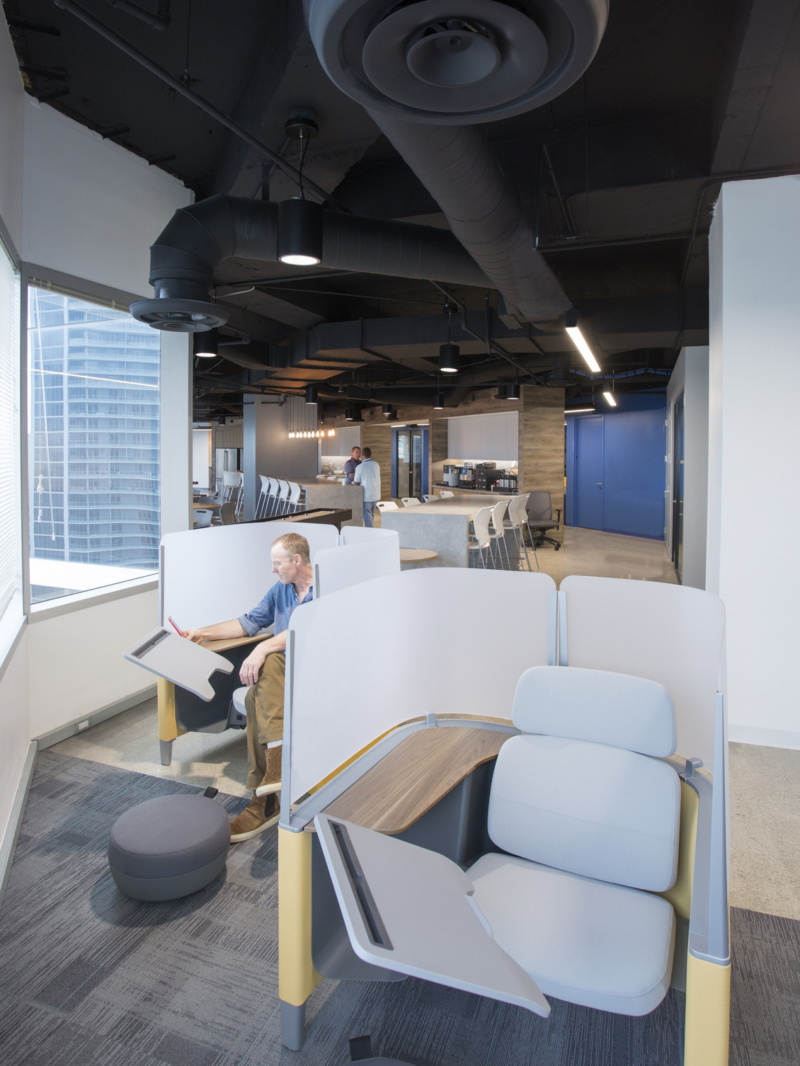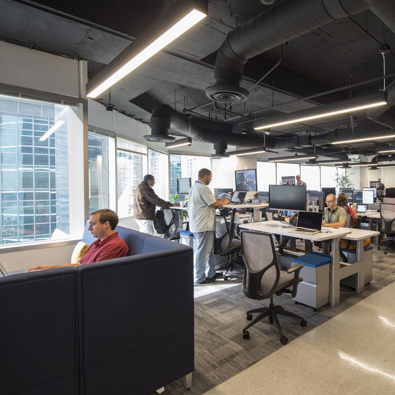Empire worked with IA Architects on the new Miami headquarters of Boats Group, an advertising and software company for the marine industry. The 20,000-square-foot project featured large open spaces and a variety of products, including Steelcase height-adjustable benching, 9to5 task chairs, Coalesse tables and soft seating, and Global cafe chairs.