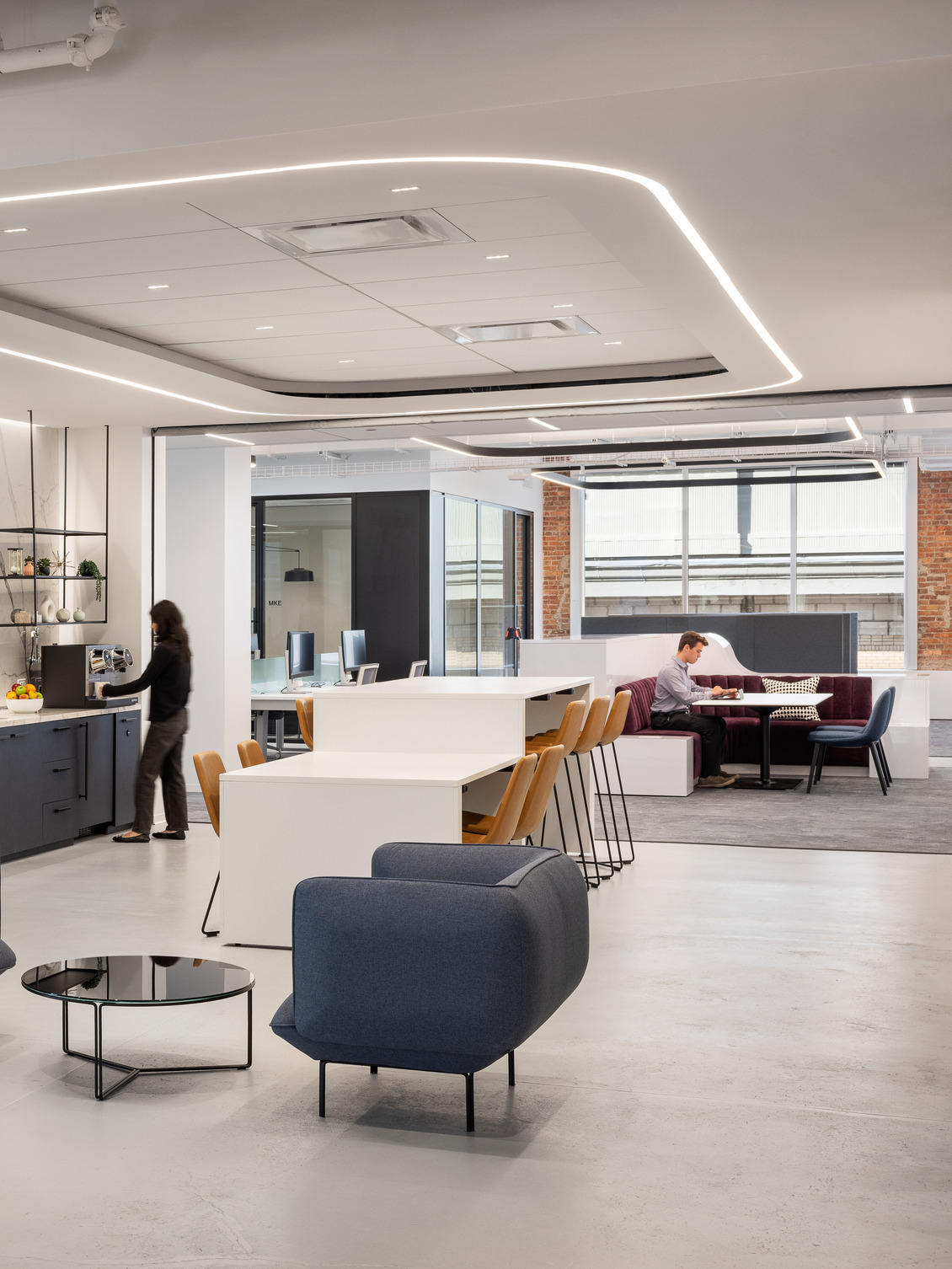 Each floor features a full pantry and coffee bar, along with a library for focused work, hospitality-inspired gathering spaces, and sweeping waterfront views, providing a personalized work environment for every individual.