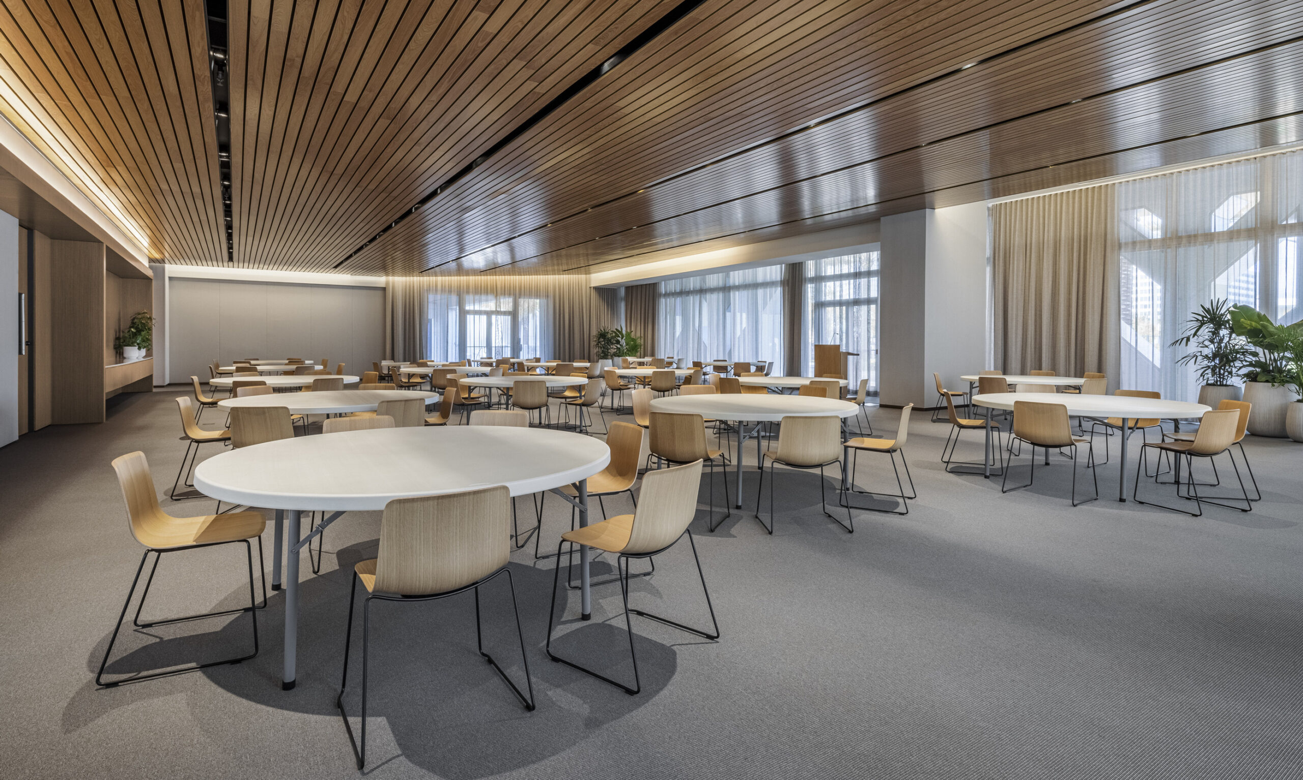 Amenities include a 3,600 SF ballroom with banquet seating, social hallway with various types of seating and game tables, large and small classrooms and a catering kitchen.