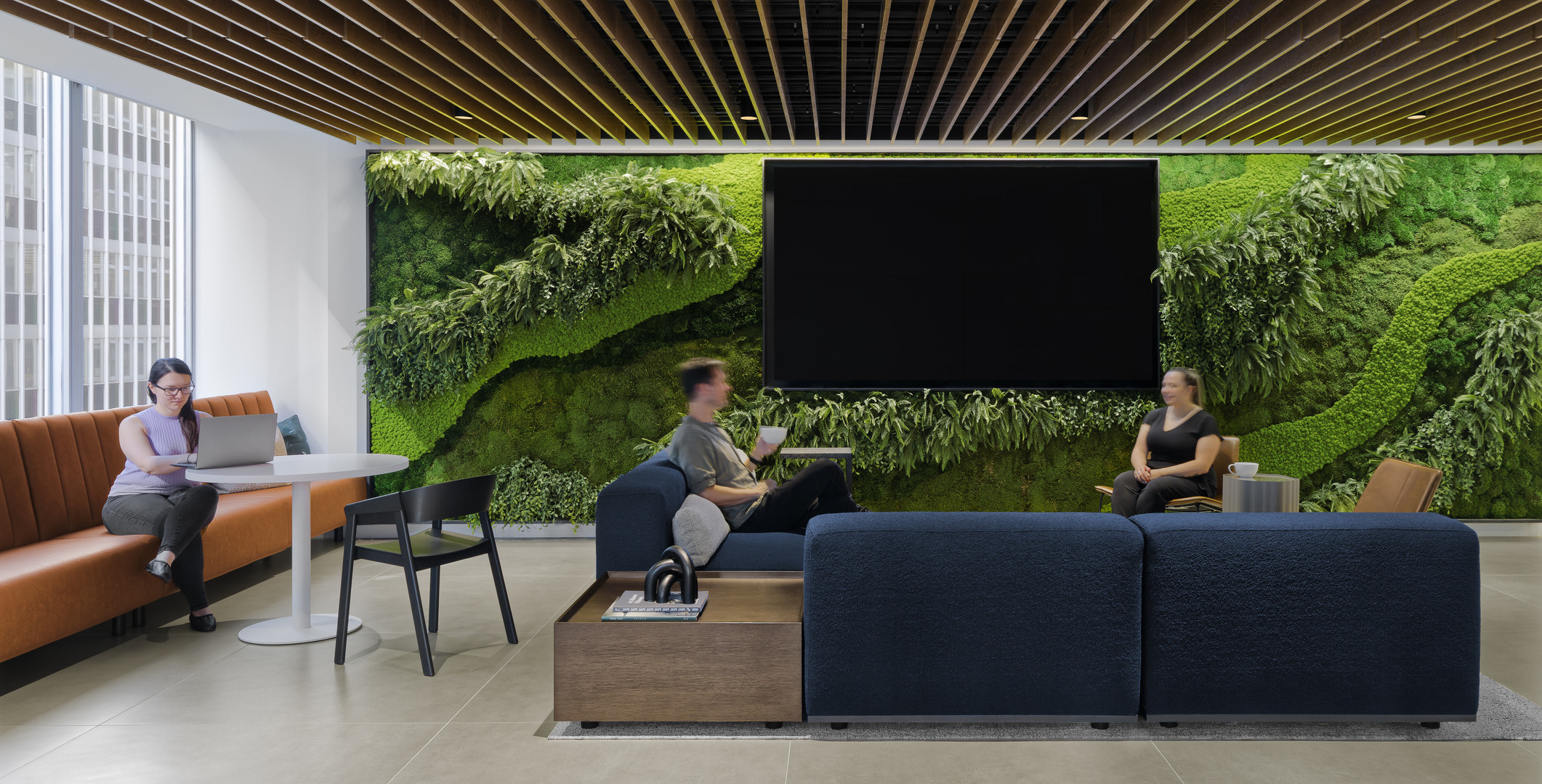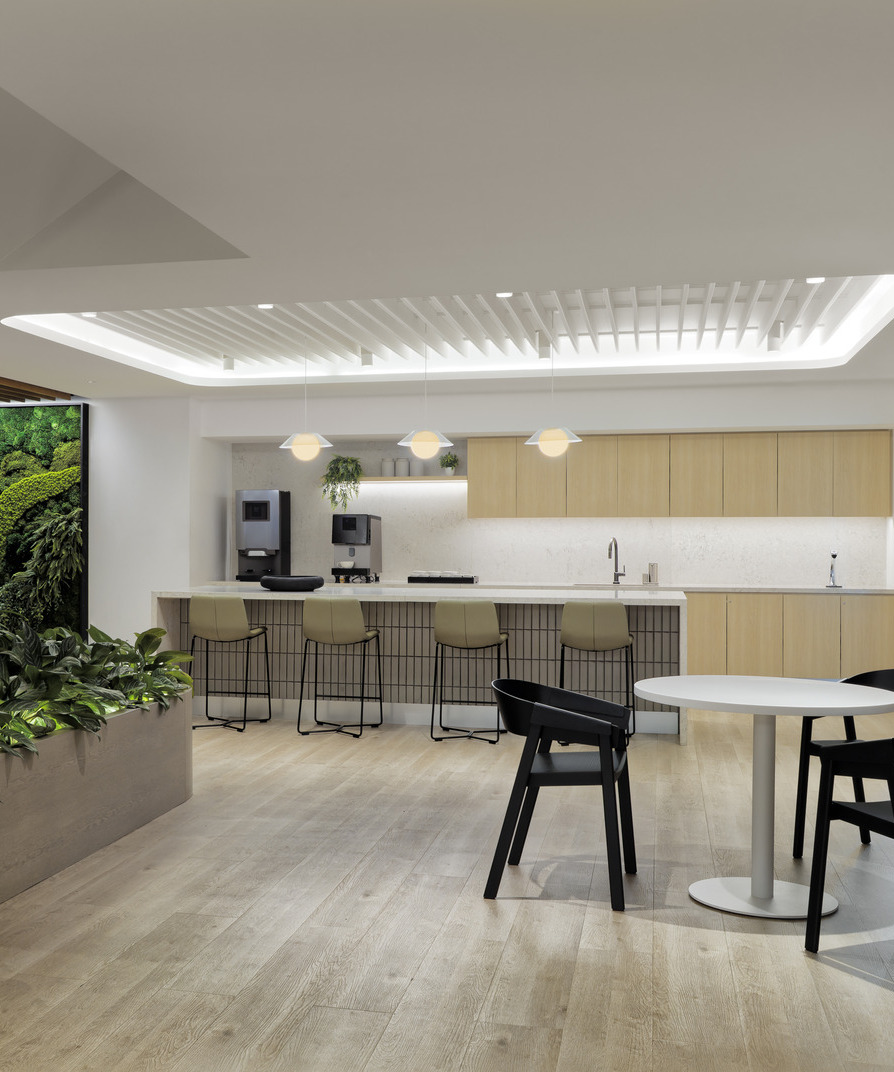 Contoured furniture selections balance a careful integration of biophilia and organic elements incorporated throughout. Lounging areas, conference rooms, common spaces, and a fully equipped café among other amenities, offer sophisticated variety, delivering a design-forward and cost-conscious solution.