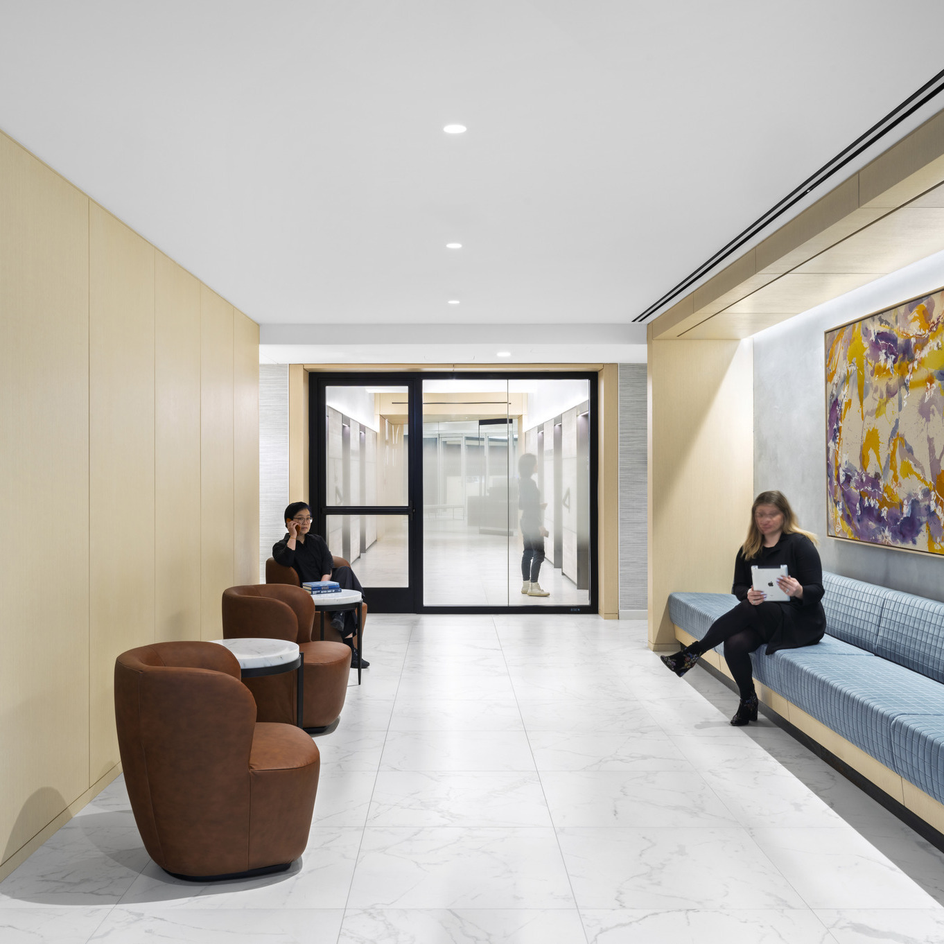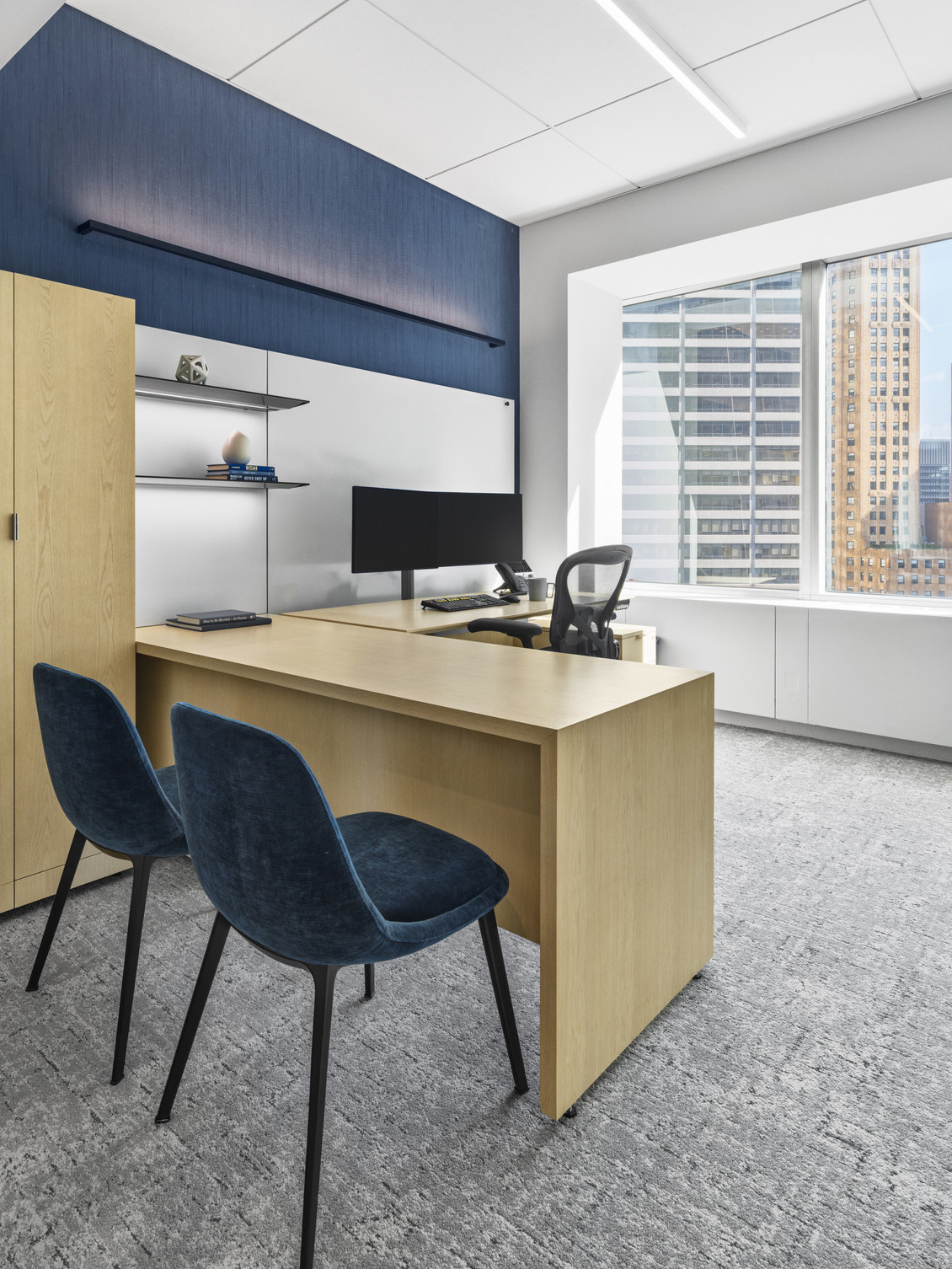 The project encompassed a broad furniture scope, with pieces procured from over 30 ancillary manufacturers. Select partners included Holly Hunt, Poltrona Frau, Andreu World, Stylex, Jamie Stern, Gunlocke, and Nucraft, among many others. Empire specified and procured all private offices and workstations, utilizing Steelcase EE6 and Answer solutions. Steelcase’s Studio b team was engaged to address custom private office requirements, including unique dimensions and mitred-edge desks.