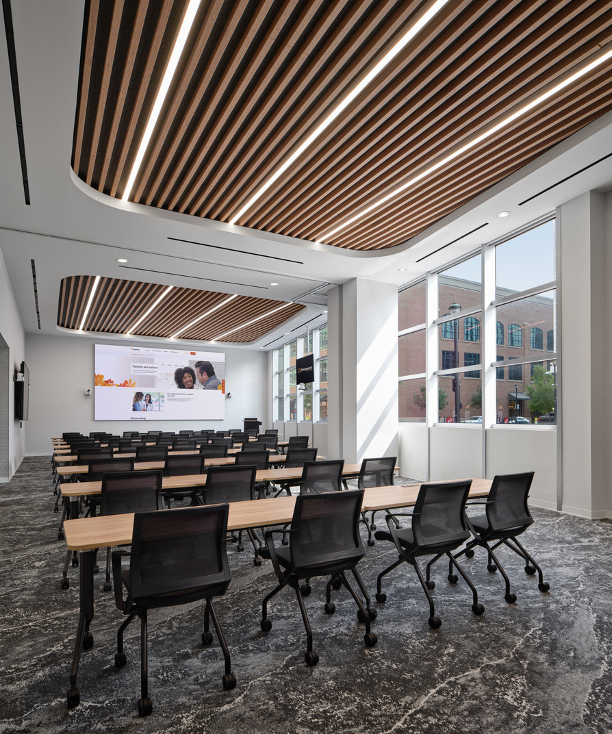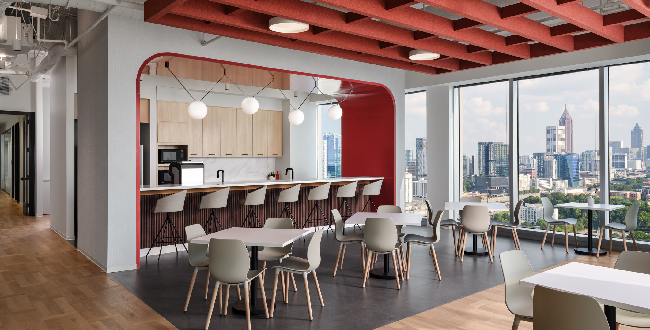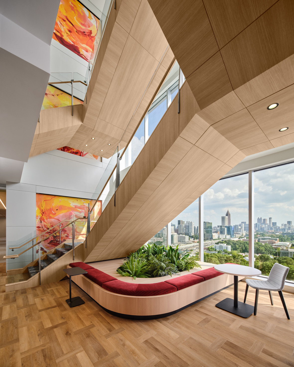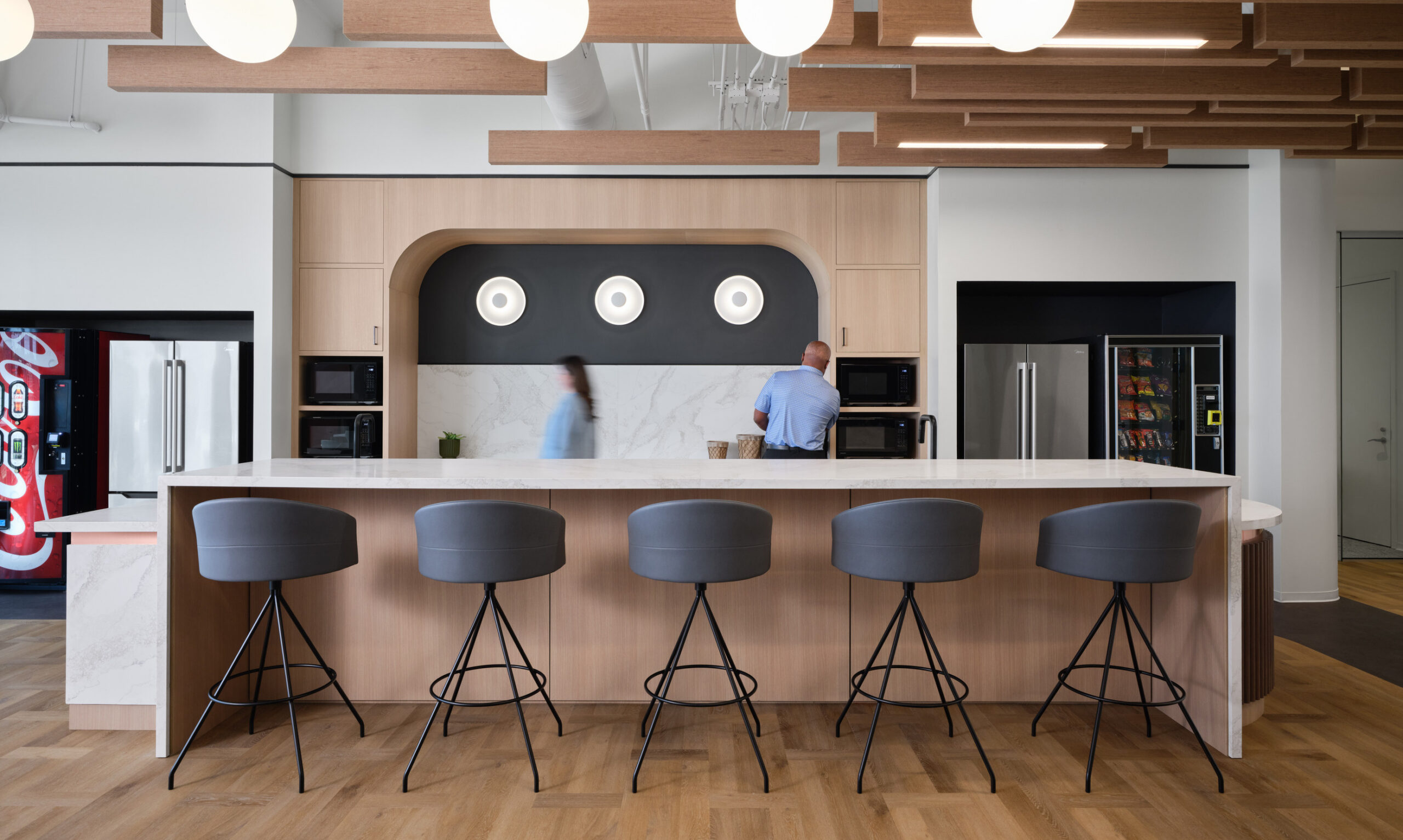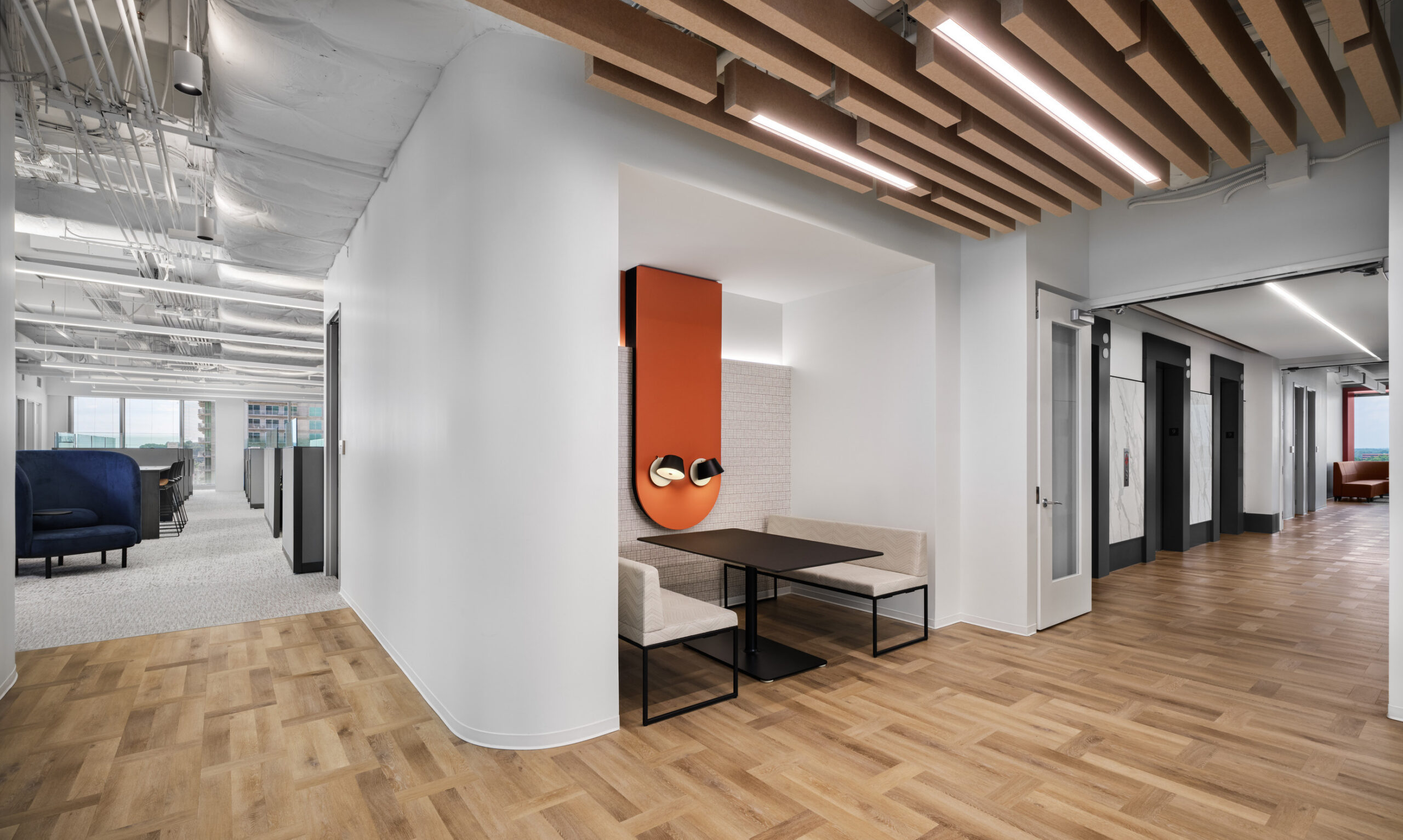 Notable project highlights include bold art and design choices with subtle nods to a renowned brand identity, along with careful considerations for a user-focused work experience. A variety of work settings are smartly integrated to encourage connection, individual privacy, and growth across departments. Working with a quick-paced client schedule required behind-the-scenes,
