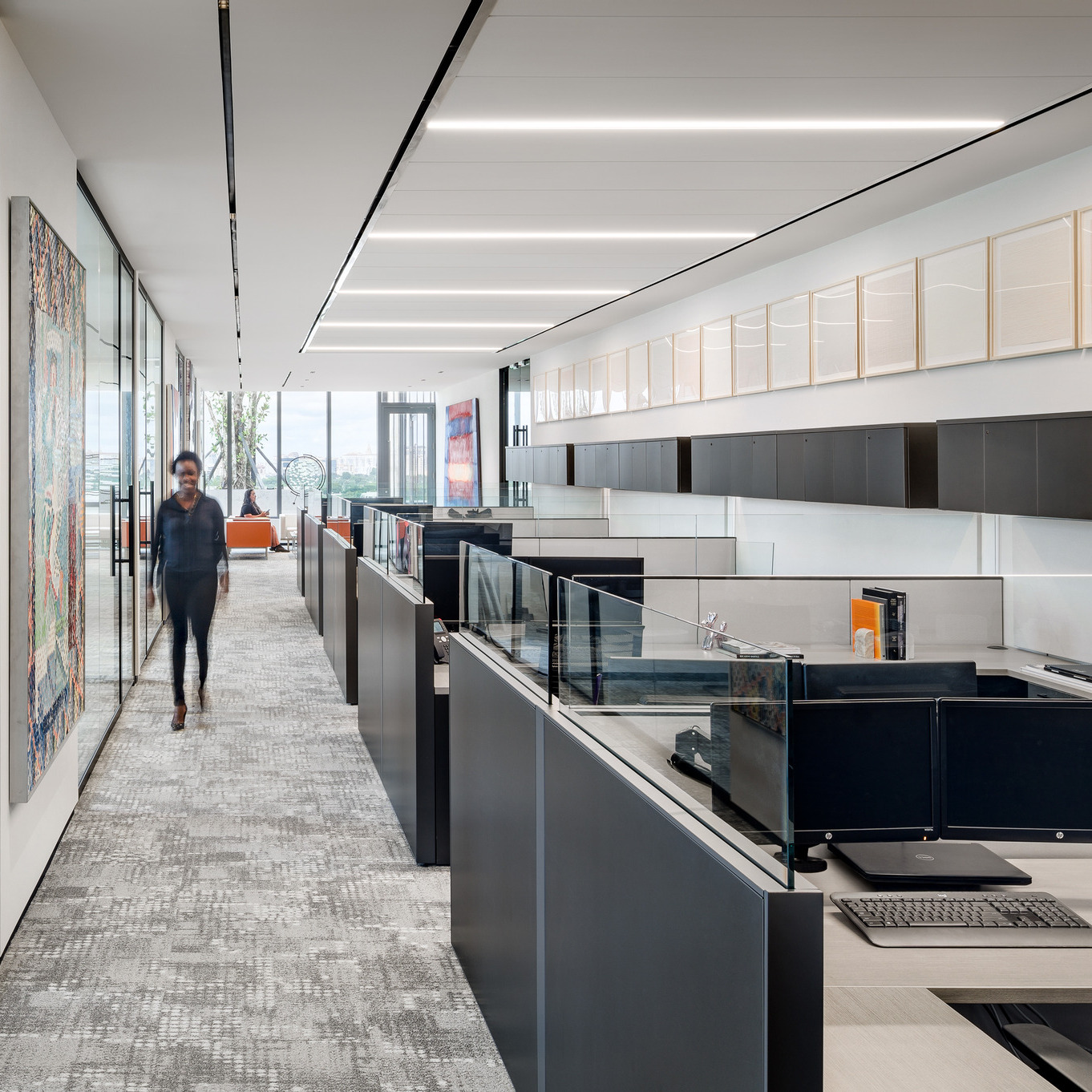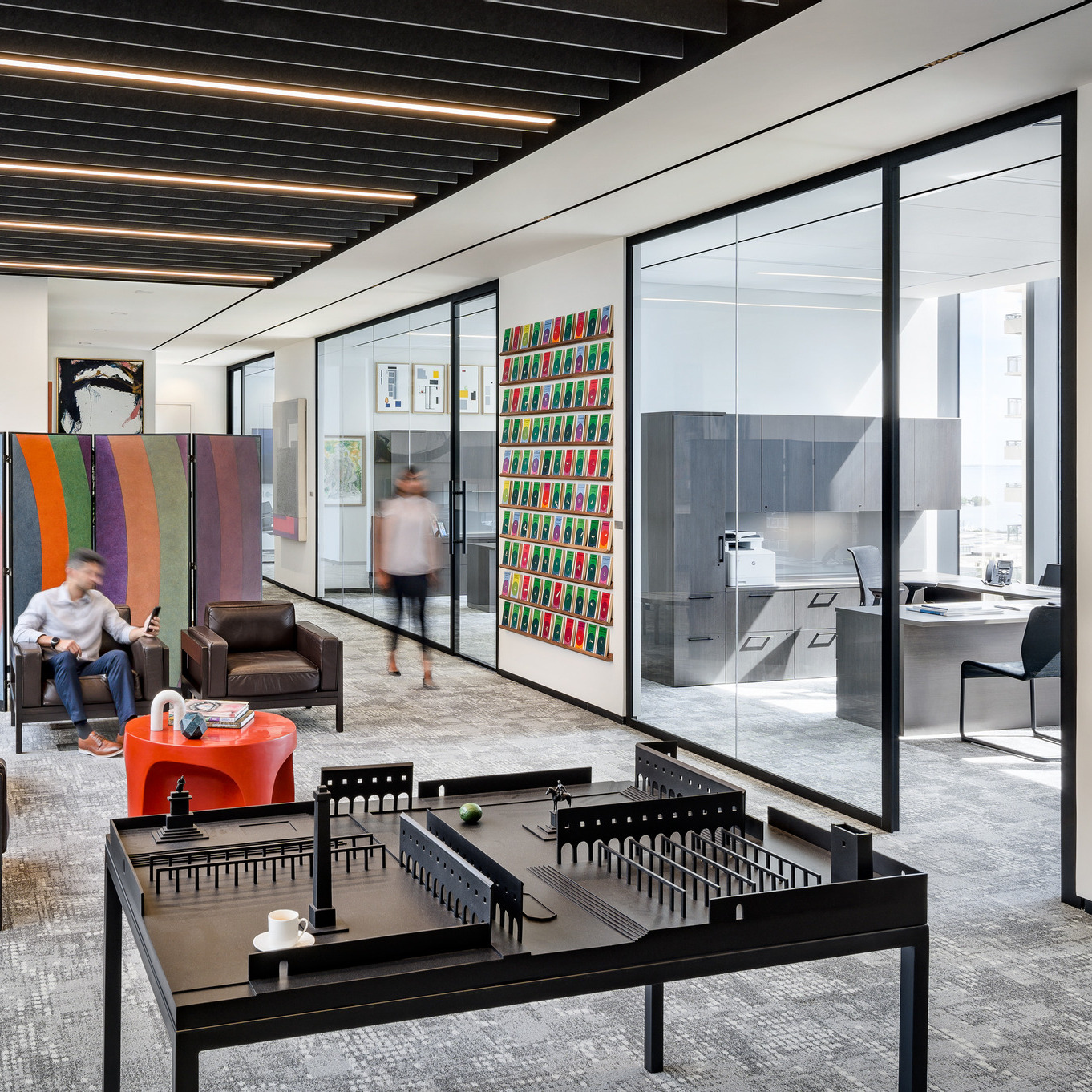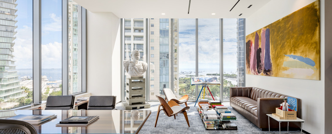 Related Group’s employees can enjoy added amenities in their new HQ at The Grove, such as ample outdoor space, a large pantry and flexible collaborative areas. A variety of ancillary manufacturers were used including OFS, Muuto, JANUS et Cie, Fermob, and Woodtech custom conference tables. Steelcase Answer and Steelcase Currency were specified for the workstations and enclosed private offices, respectively. Striking art pieces from the private collection of Related Group’s chairman and CEO punctuate the space as well, adding to the uniqueness of the office.