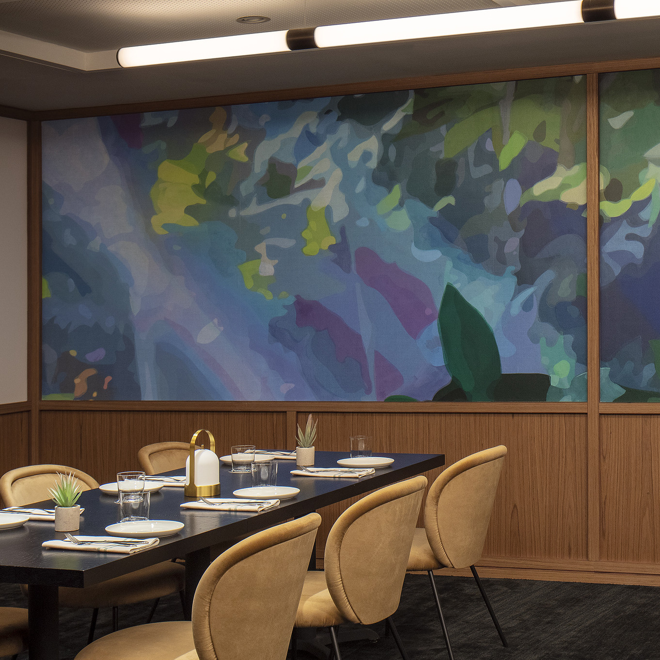 Over 20+ manufacturers were used, including Andreu World, Bernhardt, JSI, Muuto, Narbutas, and Resident Furniture to name a few. Custom millwork by Fabricate is incorporated throughout the biophilic amenity space. To meet a variety of needs, a tenant-only work lounge, mother’s room, and several collaboration areas were carefully considered for this development.